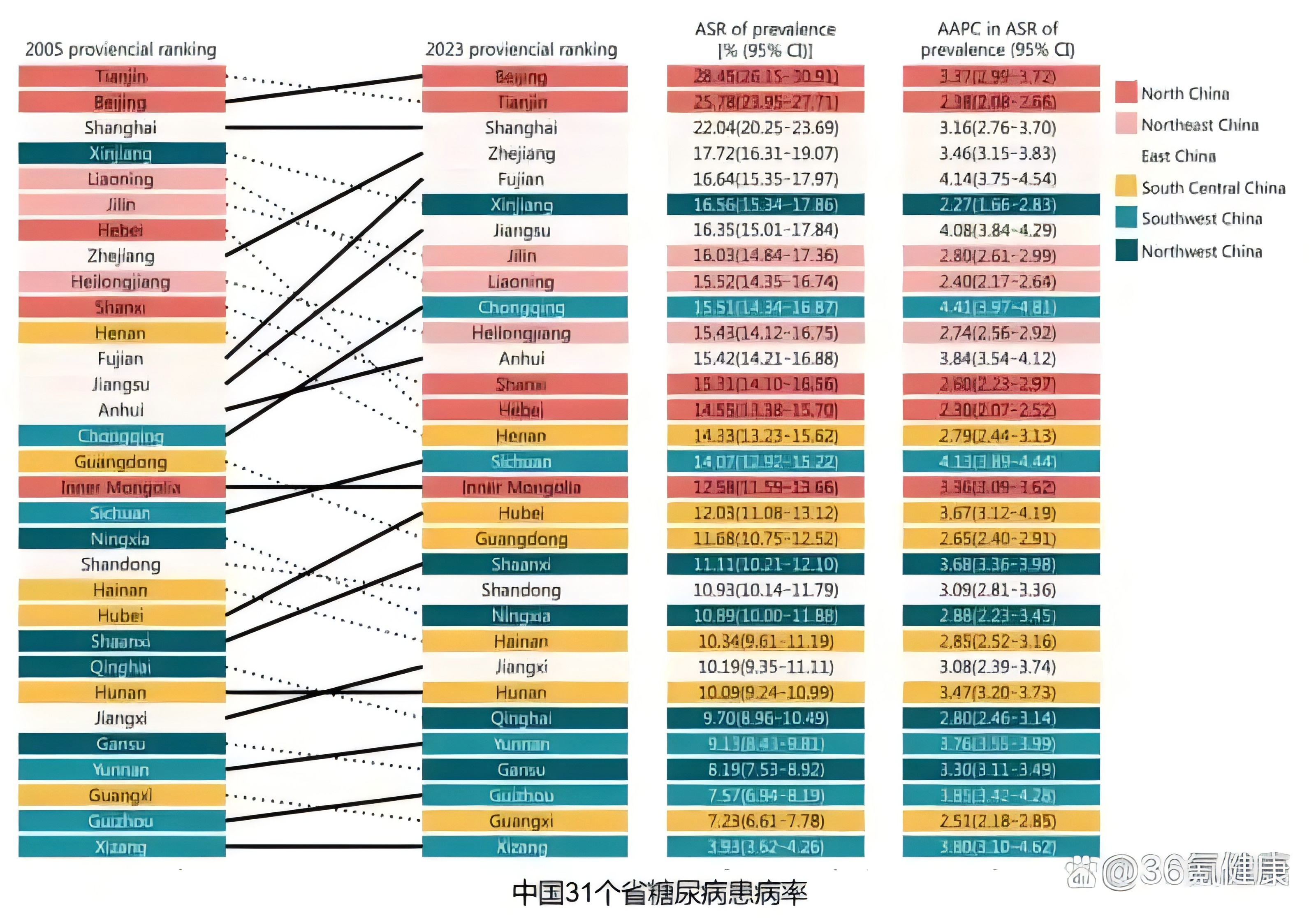 研究数据显示,中国糖尿病防控形势不容乐观。华北、东北和华东地区已成为糖尿病的"重灾区",其中北京、天津、上海三大直辖市的患病率更是突破20%大关。